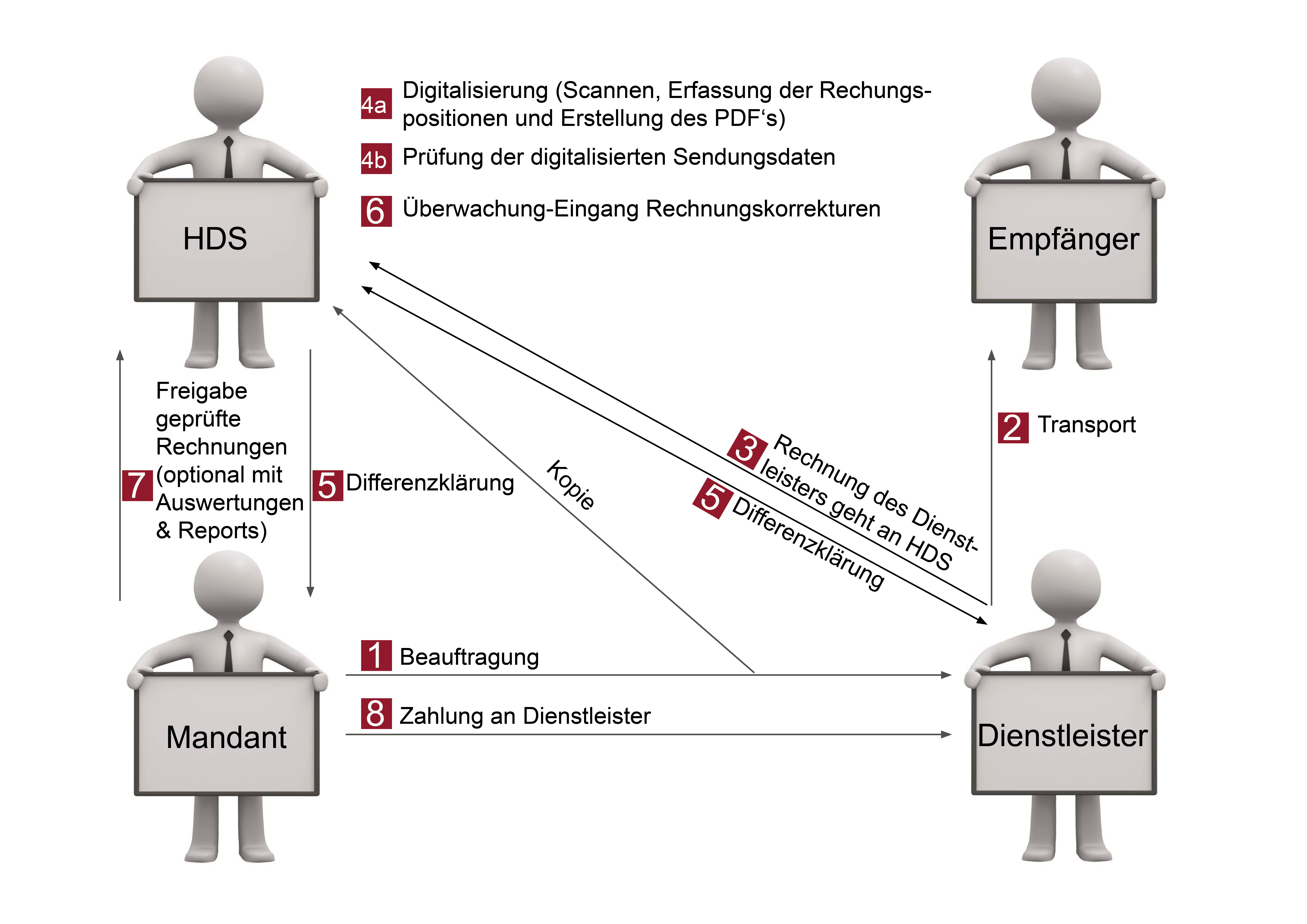 - Der Dienstleister schickt die Rechnung an den Versender