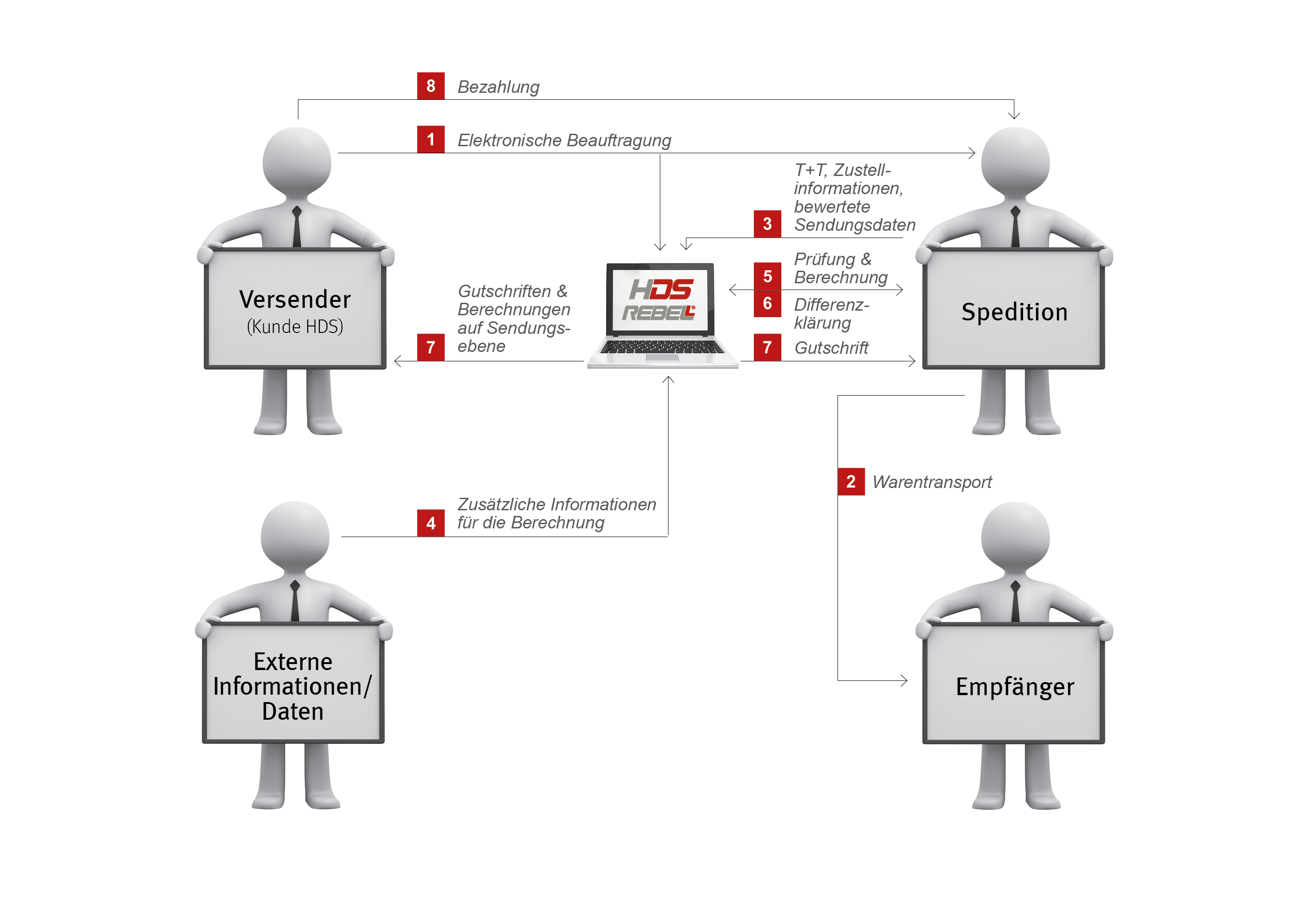 - Die Mandantin der HDS bezahlt den korrekten Betrag an den Logistikdienstleister